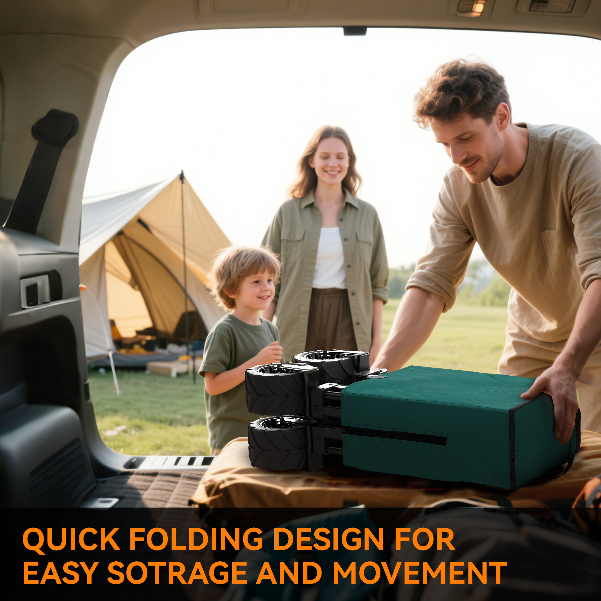 140L Festival Trolley On Wheels, Folding Camping Trolley Cart With Telescopic Handle, Big Wheels For Outdoor Garden Beach Fishing, Green
