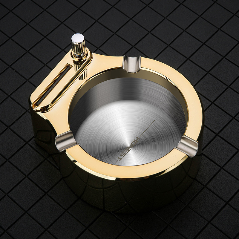 Large Cigarette Ashtray With Permanent Match Lighter Fancy Metal Ash Tray Set For Weed Cool Ashtrays For Cigars Outdoor Indoor Decor In Home Office